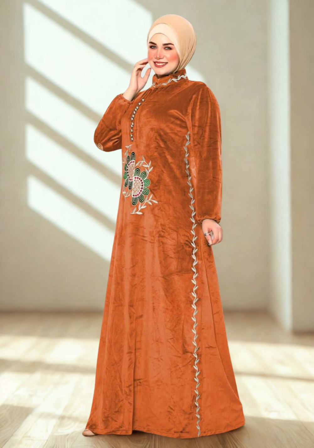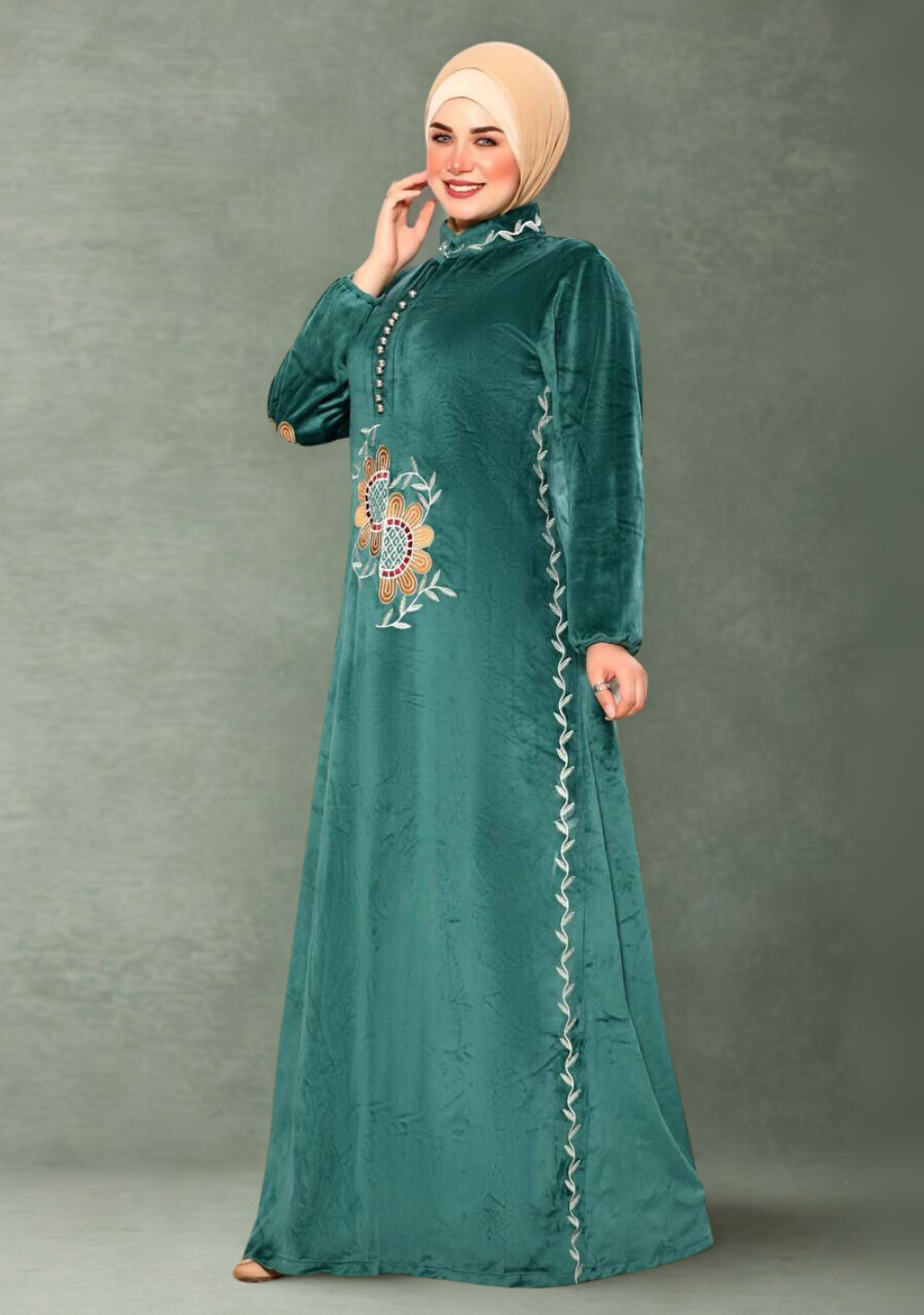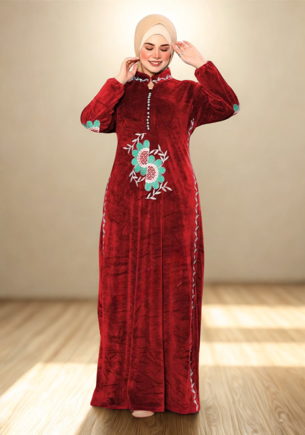 تصميم يعكس الأناقة والدفء في آنٍ واحد، من خامة قطيفة هايدي وجهين تمنحك ملمس ناعم ومظهر فاخر من كل زاوية. مطعّم بتطريز ناعم يضيف لمسة أنثوية ساحرة.