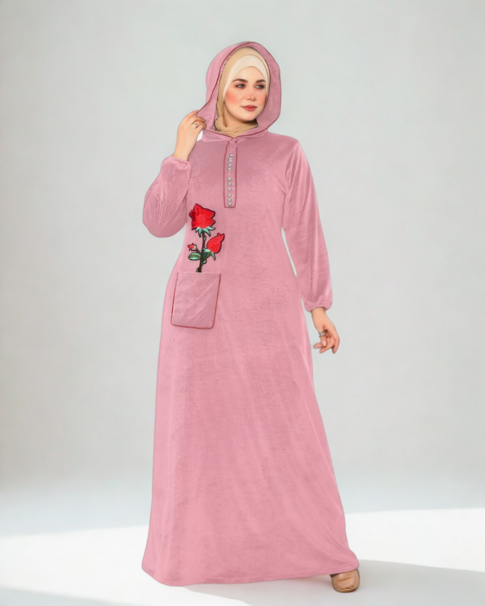 تصميم راقي وعملي يعكس أنوثتك ويمنحك إطلالة تجمع بين النعومة والفخامة. مصنوع من خامة قطيفة هايدي وجهين، أي قطيفة من الوجه والظهر، لتنعمي بملمس ناعم ولمعة راقية من كل جانب.