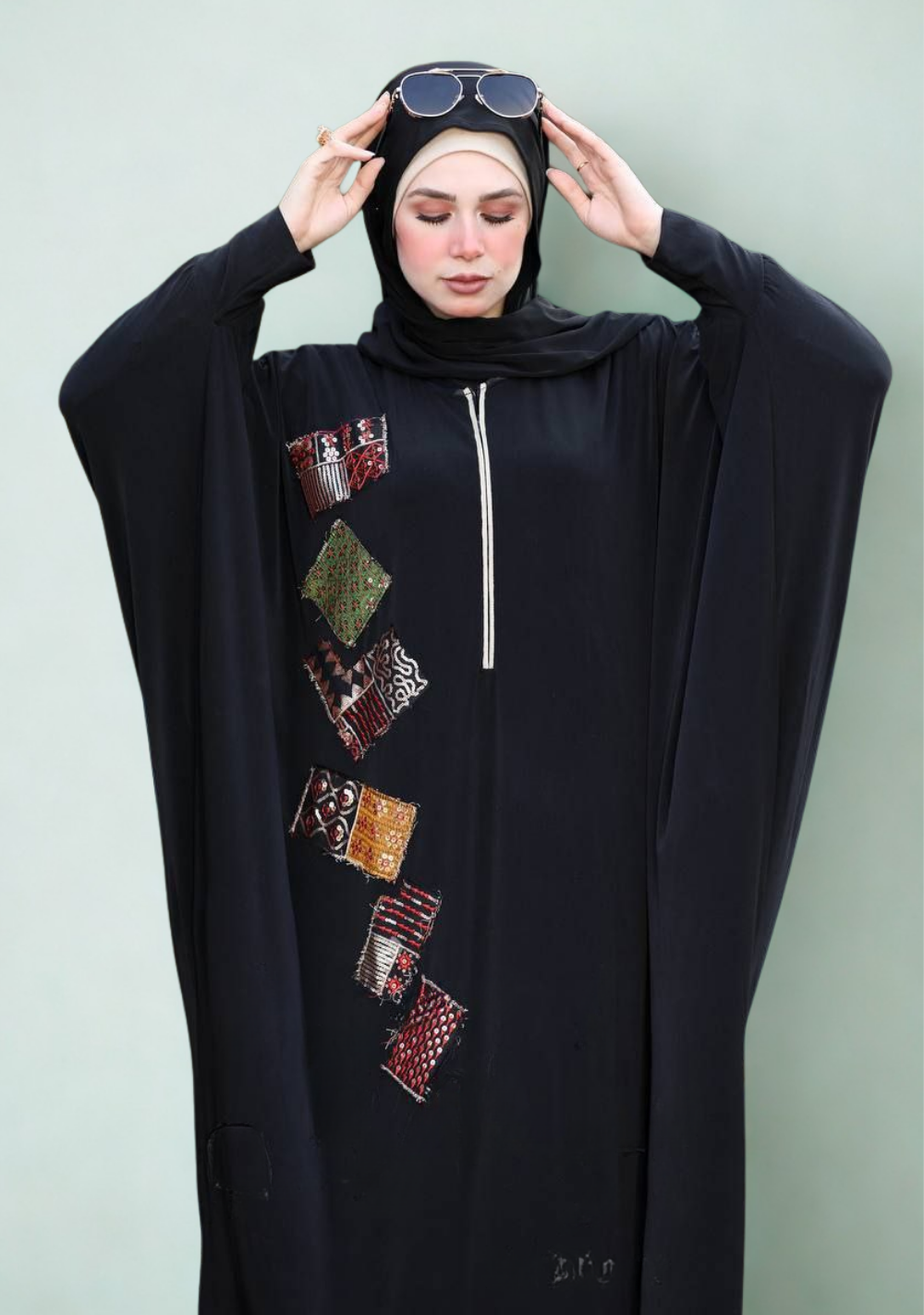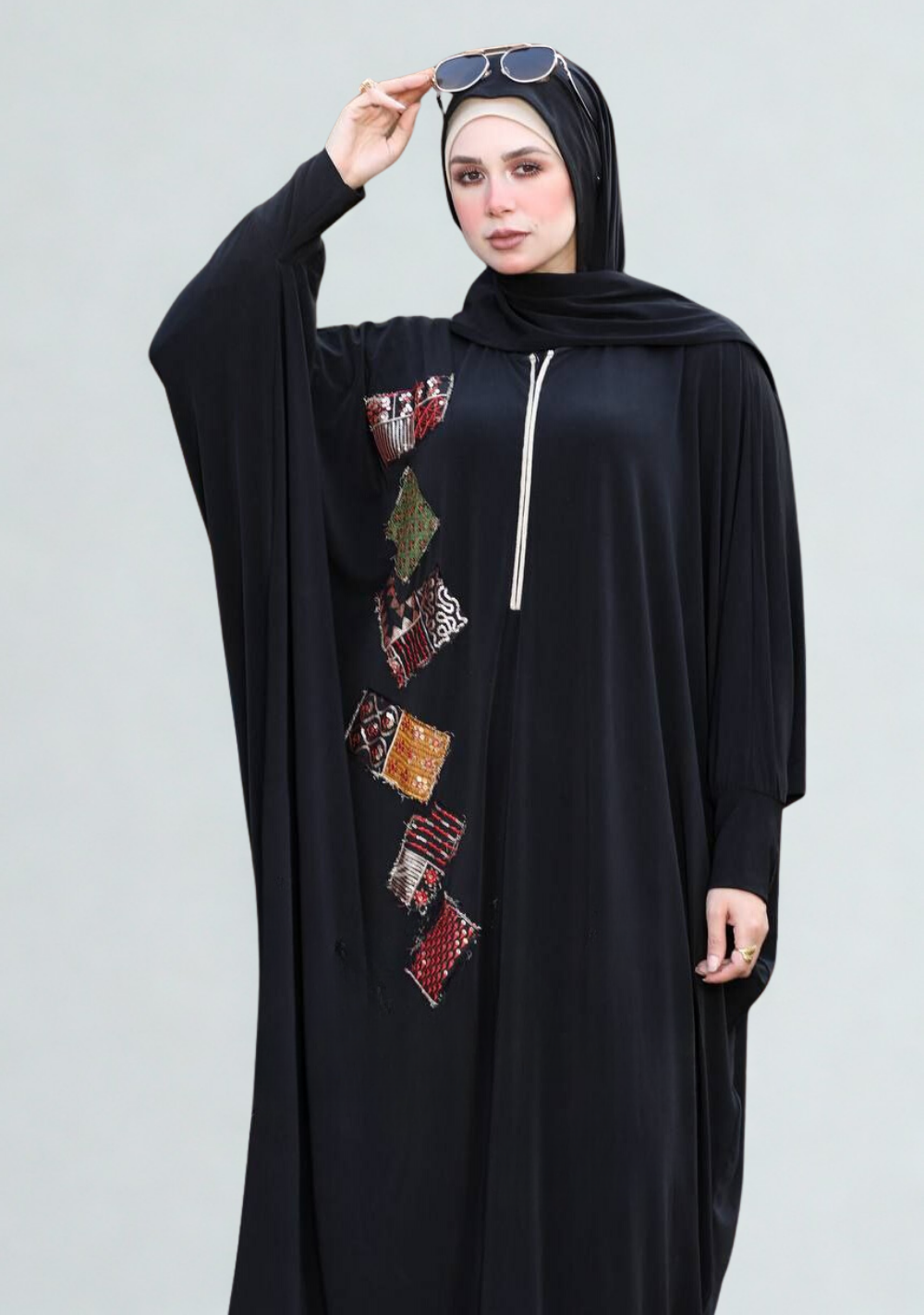 إسدال مميز من سدرة – ITY مطعّم بقماش هندي هاند ميد