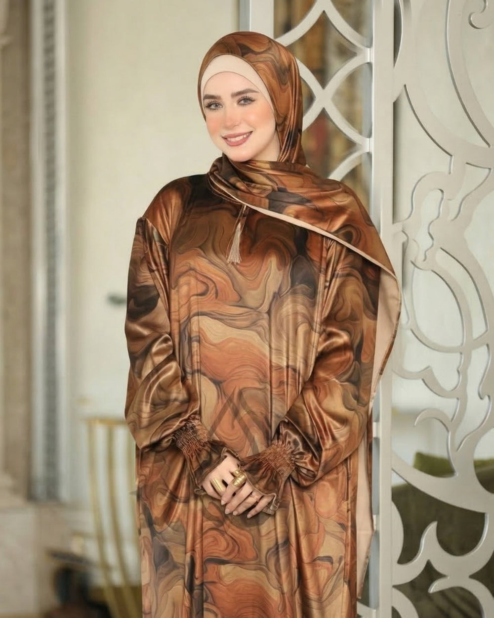 يأتي بطرحة متصلة بتصميم مستور وأنيق يمنحك سهولة في الارتداء وإطلالة متكاملة، مع تفاصيل تضيف لمسة فخامة هادئة تناسب جميع الأذواق.