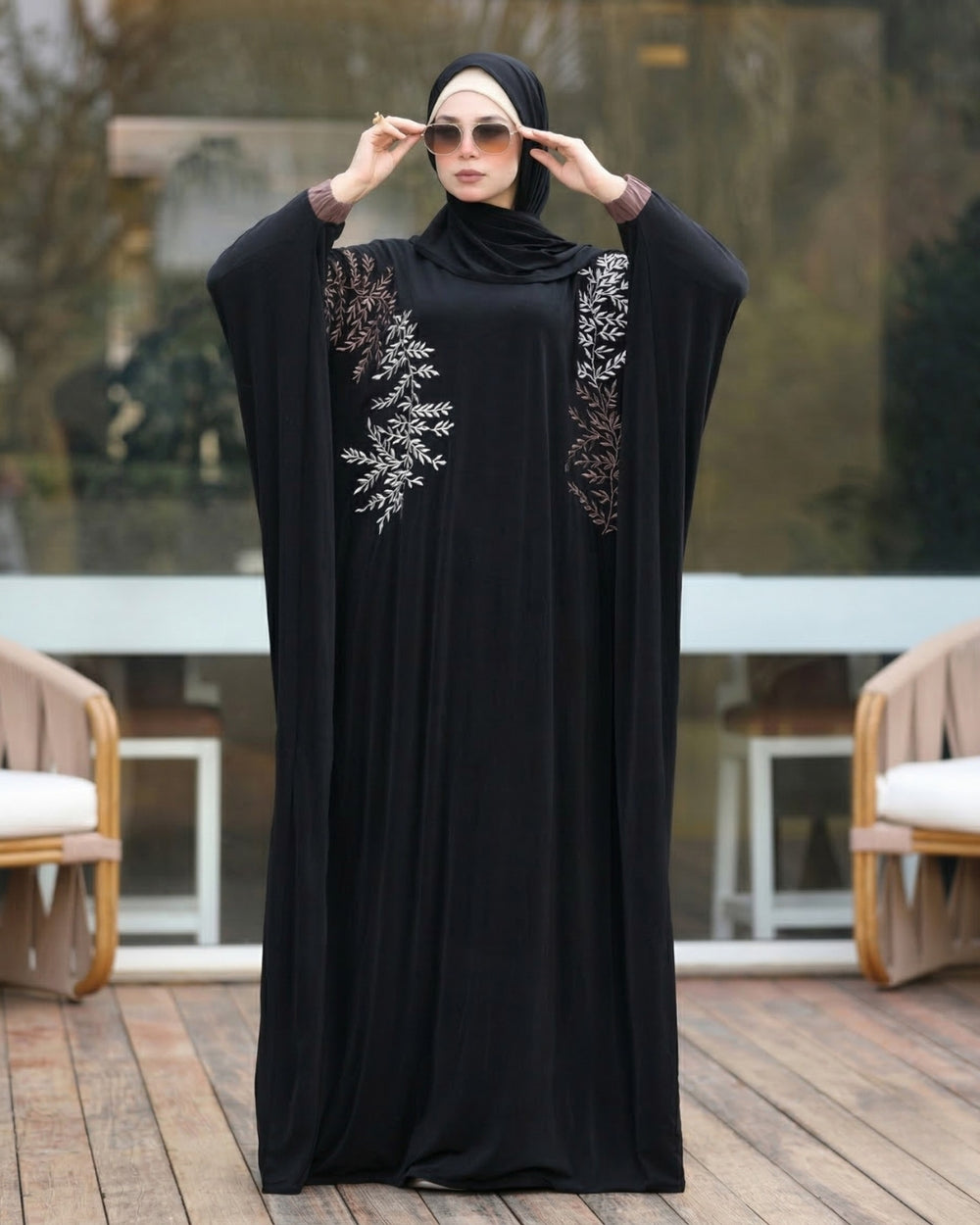 يتميز الإسدال بتطريز يدوي أنيق يضيف لمسة فخامة بسيطة، مع طرحة متصلة تمنحك سهولة في الارتداء وإطلالة متكاملة.