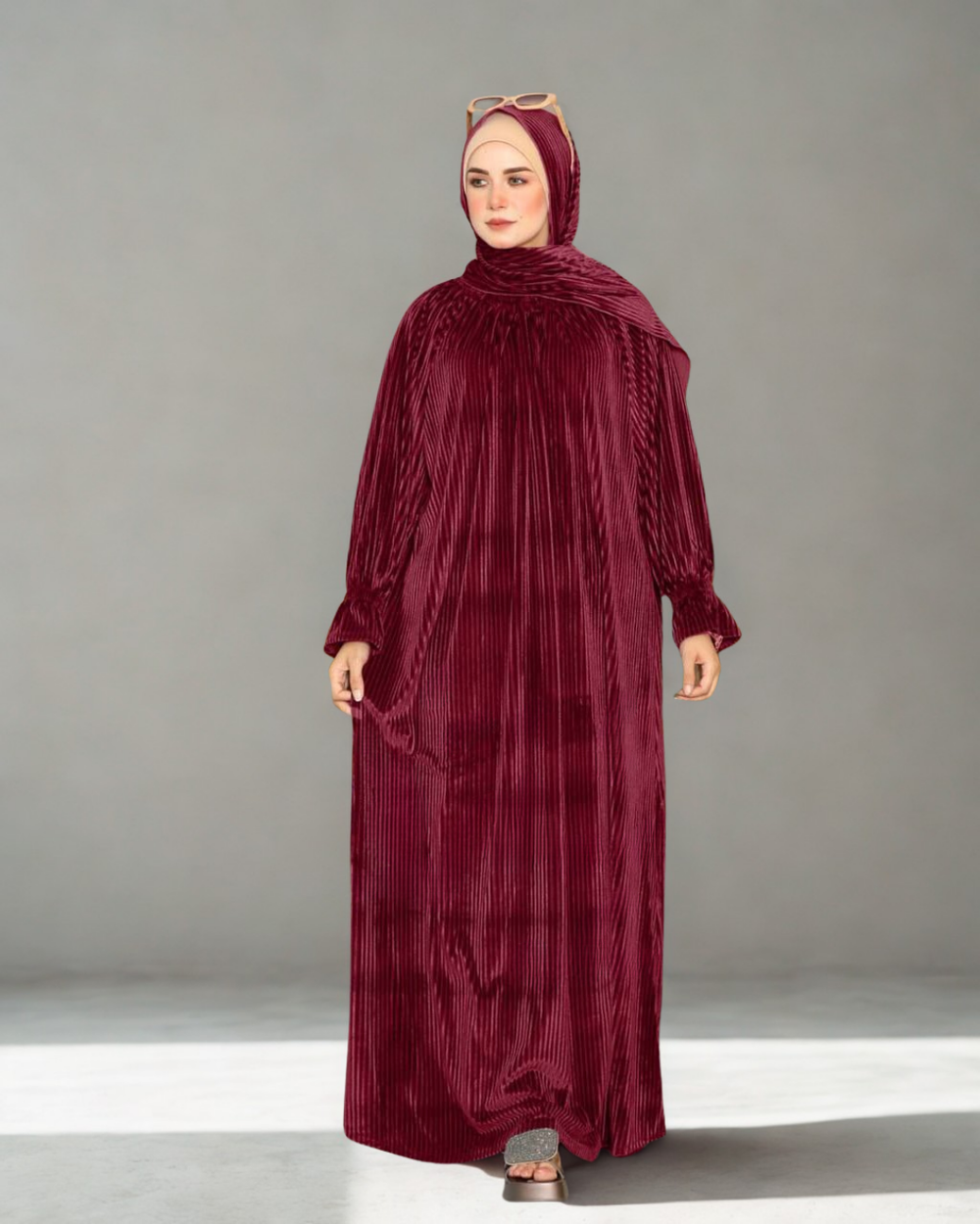 يأتي بطرحة متصلة لراحة أكبر وأناقة متكاملة تناسب جميع الأوقات والمناسبات.