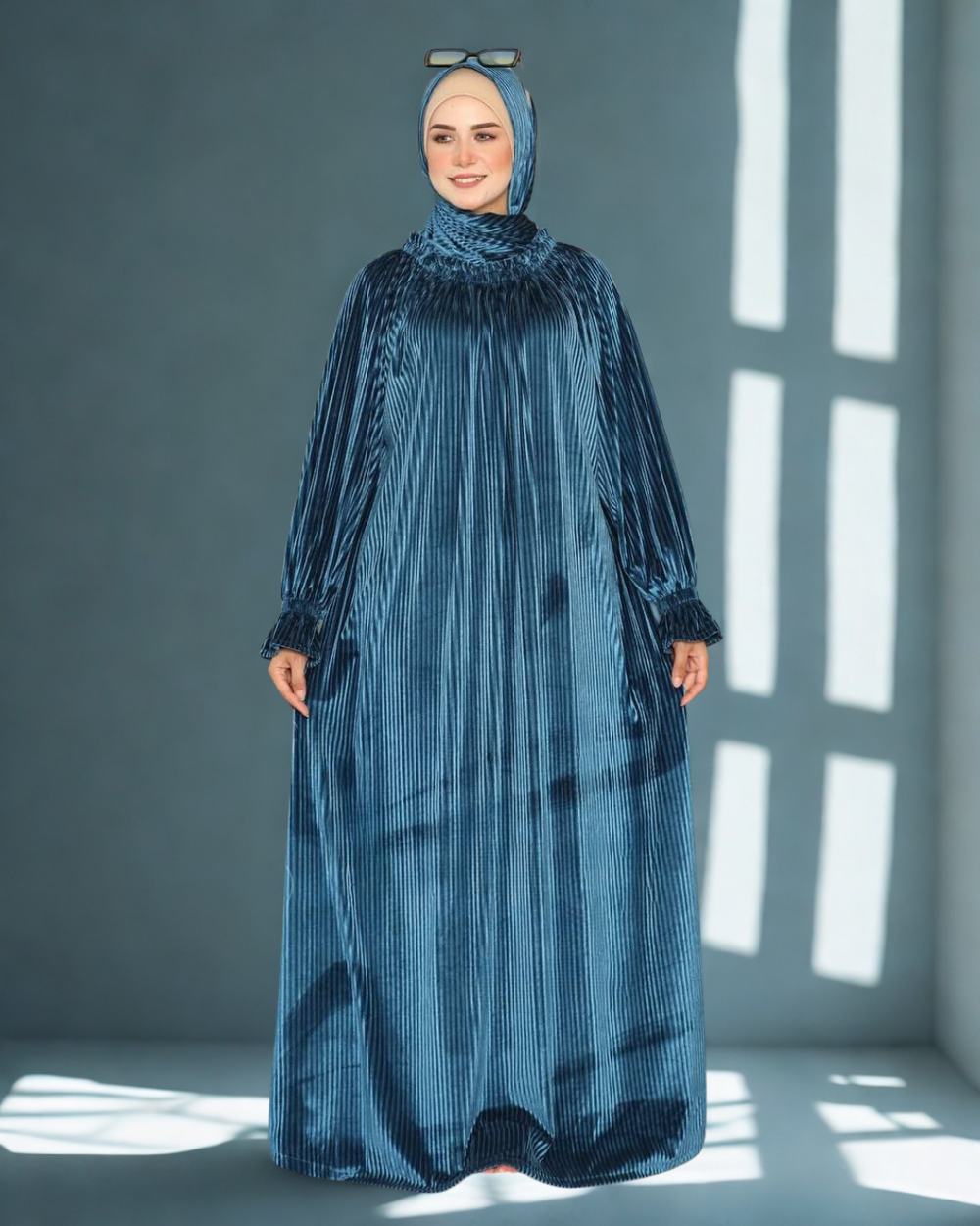 إسدال من سدرة بتصميم يجمع بين الرقي والبساطة، مصنوع من خامة قطيفة بليسيه فرنسي فاخرة تمنحك ملمس ناعم ولمعة راقية تضيف لإطلالتك لمسة من الفخامة والتميز.